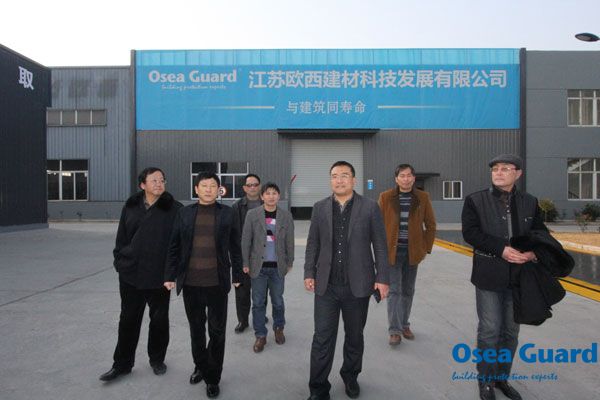 2015年1月23日,江蘇省建筑防水協會領導一行蒞臨歐西洪澤生產基地參觀考察。