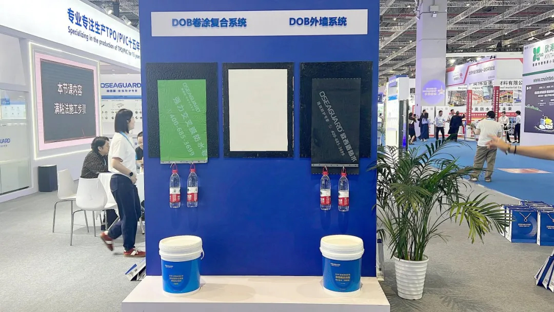 歐西盾防水位于5.2號館5016展位,由董事長王洪波帶領(lǐng)企業(yè)團隊參與此次展會。展會中所展示的產(chǎn)品十分豐富,涵蓋了 “金屬屋面防水系統(tǒng)”、“TPS 鋼塑一體瓦系統(tǒng)”、“DOB 卷涂復(fù)合系統(tǒng)”、“DOB 外墻防水系統(tǒng)”以及 “公民建防水系統(tǒng)” 等,充分體現(xiàn)了品牌的多元性。歐西盾防水依靠成熟且完備的防水理念和高品質(zhì)的防水新產(chǎn)品,成功吸引了眾多人氣,眾多專業(yè)觀眾都被吸引過來,紛紛停下腳步進行咨詢。