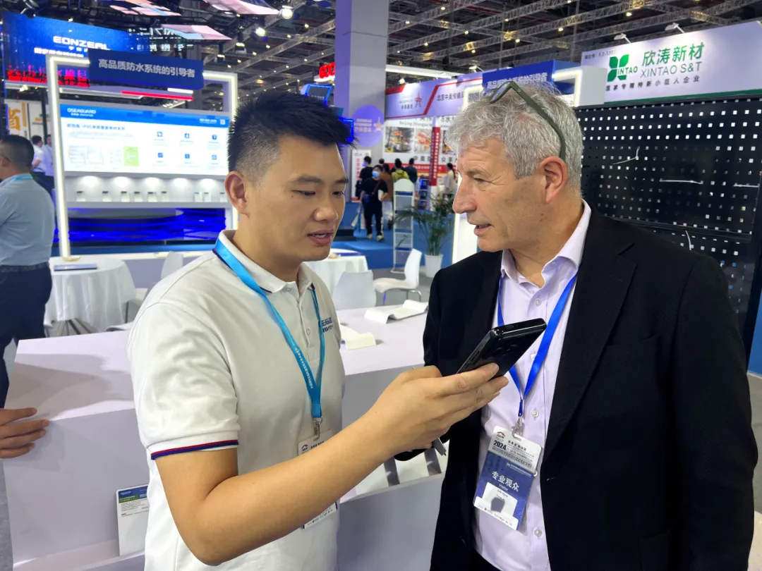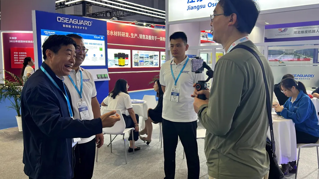 并且在現(xiàn)場對歐西盾防水董事長王洪波先生進行了采訪。通過沈教授和大隱于水先生的專業(yè)視角和影響力,讓更多人深入了解了歐西盾防水。無論是其先進的防水產(chǎn)品,還是專業(yè)的企業(yè)理念,都得到了充分展示。