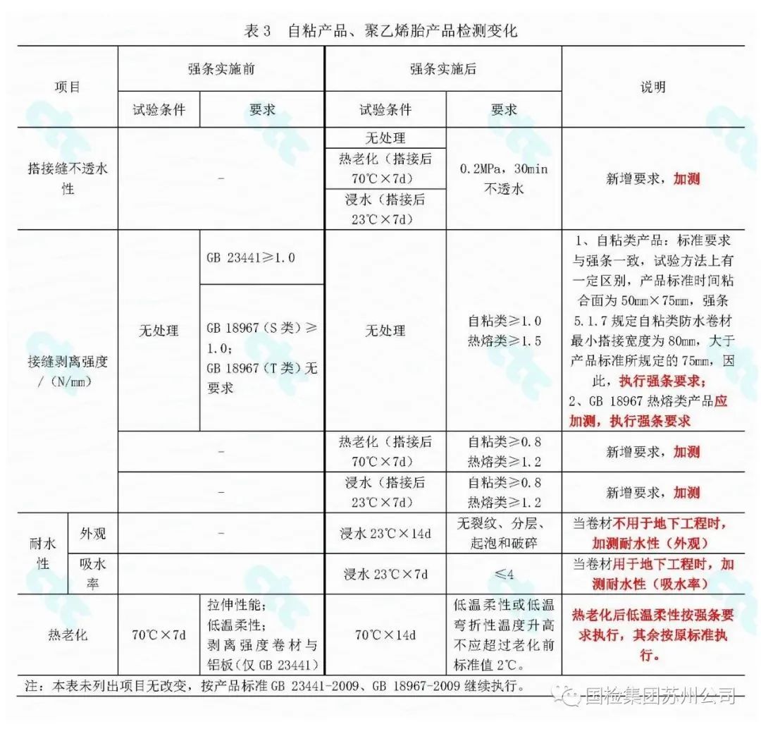 GB 55030—2022《建筑與市政工程防水通用規范》(以下簡稱“強條”),已于2023年4月1日正式發布實施。那么,強條實施后,防水材料在檢測認證方面的具體要求有哪些變化,到底如何貫徹執行強條提出的新要求呢?今天本號分享一份由國檢集團蘇州公司整理的“防水材料檢測綜合指南”,請查收。