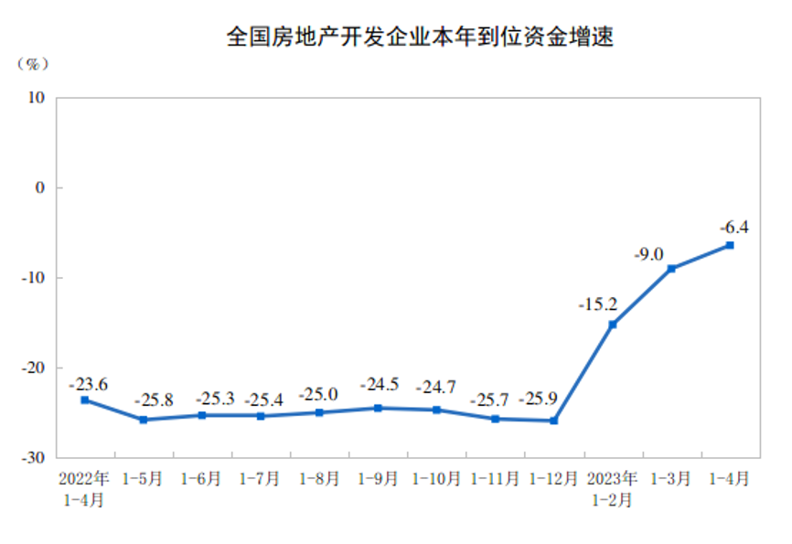 5月16日,國家統(tǒng)計局網(wǎng)站發(fā)布2023年1-4月份全國房地產(chǎn)市場基本情況。1-4月份,全國房地產(chǎn)開發(fā)投資35514億元,同比下降6.2%;其中,住宅投資27072億元,下降4.9%。1-4月份,房屋新開工面積31220萬平方米,下降21.2%;其中,住宅新開工面積22900萬平方米,下降20.6%。房地產(chǎn)開發(fā)企業(yè)房屋施工面積771271萬平方米,同比下降5.6%;其中,住宅施工面積542968萬平方米,下降5.9%。住宅新開工面積和施工面積雙雙下降,由此可見,房企投資信心恢復(fù)力較弱,主要體現(xiàn)在新開工意愿上,仍呈現(xiàn)大幅下降局面,竣工意愿則呈現(xiàn)增長趨勢。當(dāng)前市場呈現(xiàn)弱復(fù)蘇的狀態(tài),雖銷售端累計指標(biāo)有所改善,開發(fā)商新開工呈現(xiàn)觀望局面。